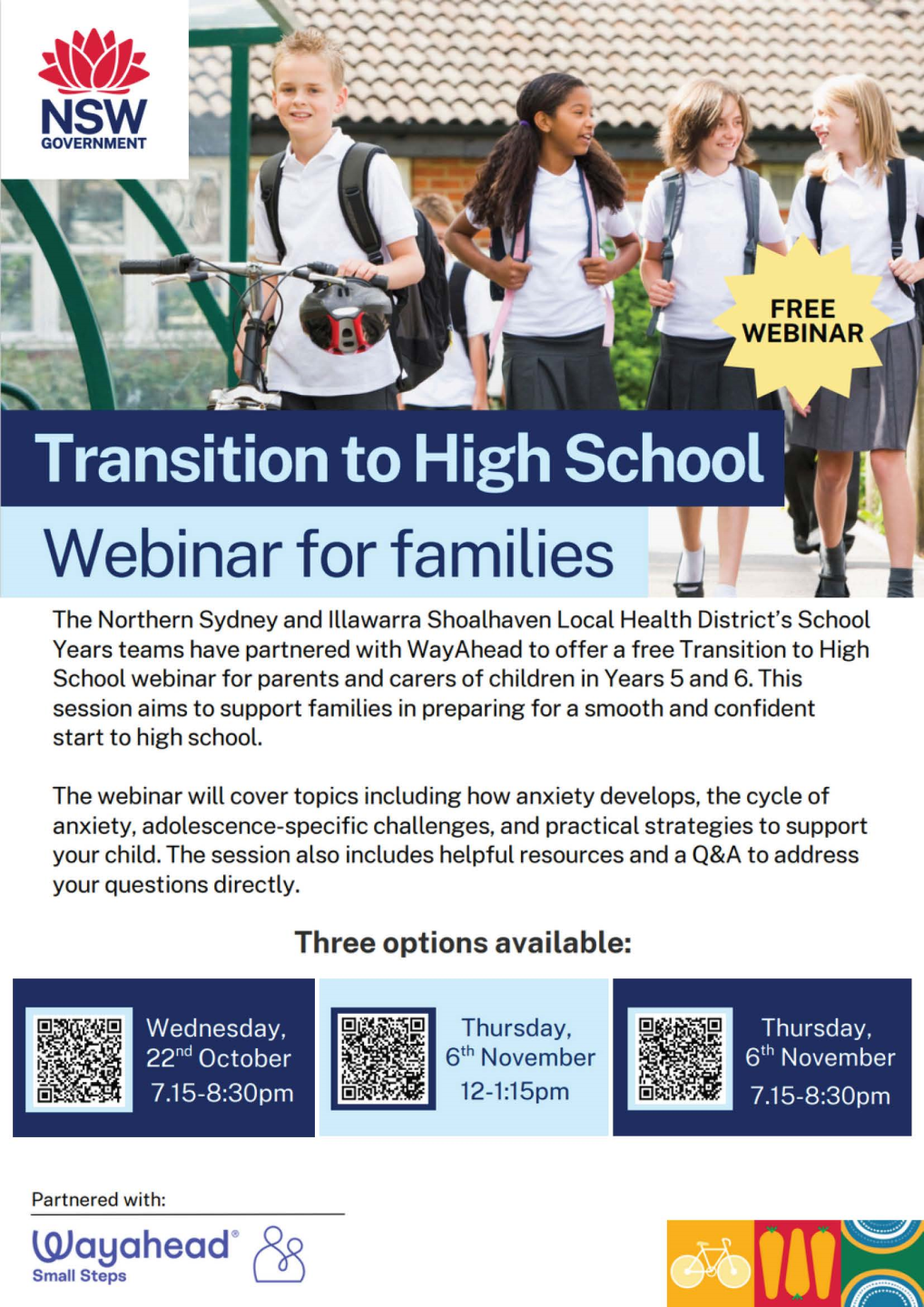 ISLHD have partnered with the Wayahead to offer free Transition to High School webinars aiming to support families in preparing for a smooth and confident start to high school.