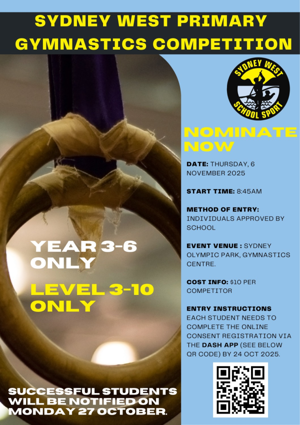 The 2025 Sydney West PSSA Gymnastics Competition Day is Open to All Primary School Students that attend a Public Primary School within the Sydney West School Sport