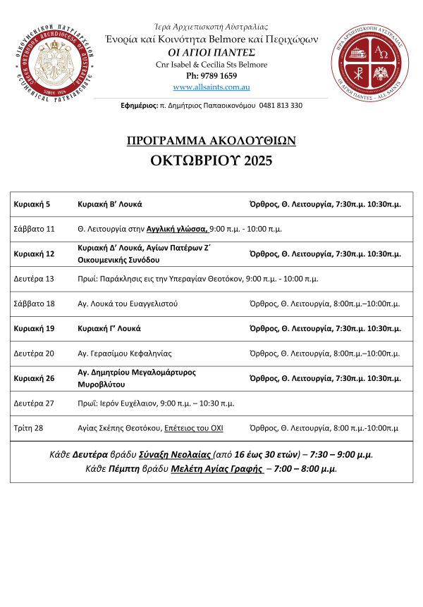 2025 October Church Program of Services.